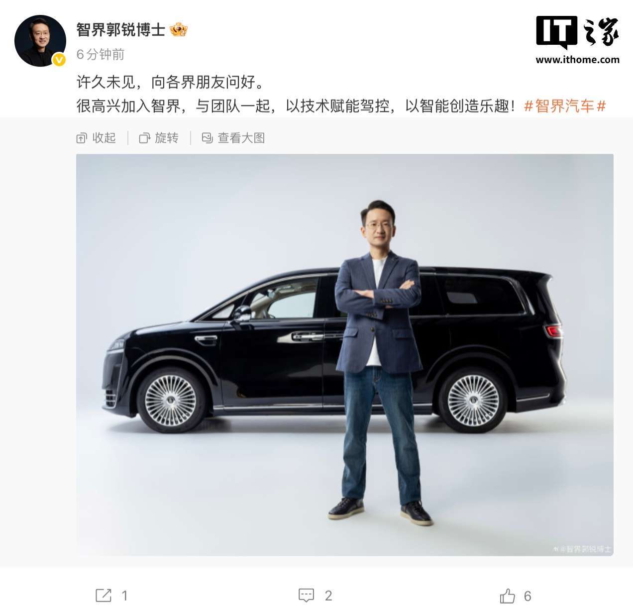 IT之家 4 月 2 日消息,4 月 2 日(今天)上午,智界汽车宣布郭锐出任董事长兼首席执行官,全面负责公司经营管理工作,即日起生效。