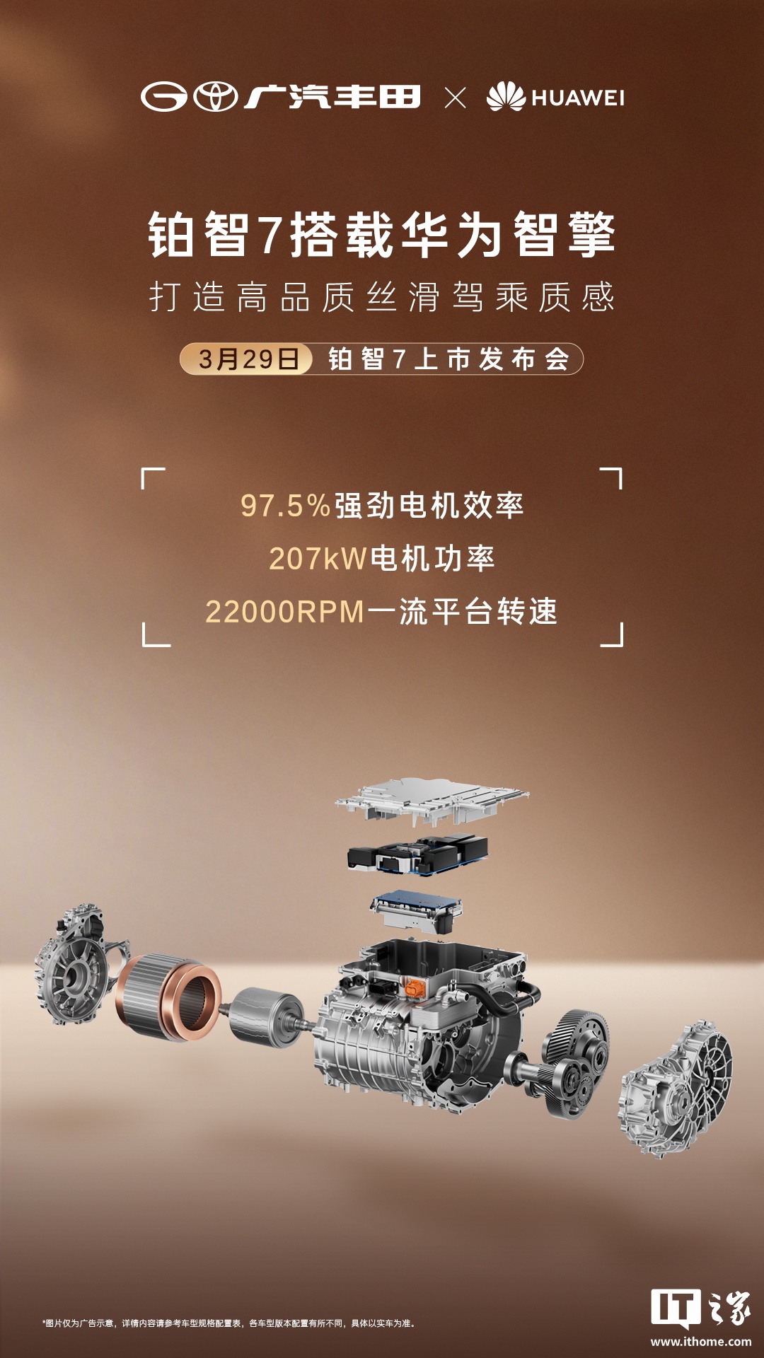 IT之家 3 月 29 日消息,广汽丰田铂智 7 今日正式上市,新车确认搭载华为智擎多合一高效集成电驱,支持 97。