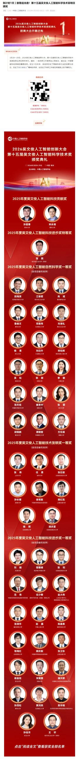IT之家 3 月 29 日消息,据央视新闻报道,今天(3 月 29 日),被誉为我国人工智能最高奖的吴文俊人工智能科学技术奖揭晓。