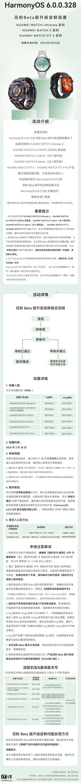 IT之家3月30日消息,华为官方今日宣布,HUAWEI WATCH 5 / Ultimate / FIT 4系列智能手表开启鸿蒙HarmonyOS 6。