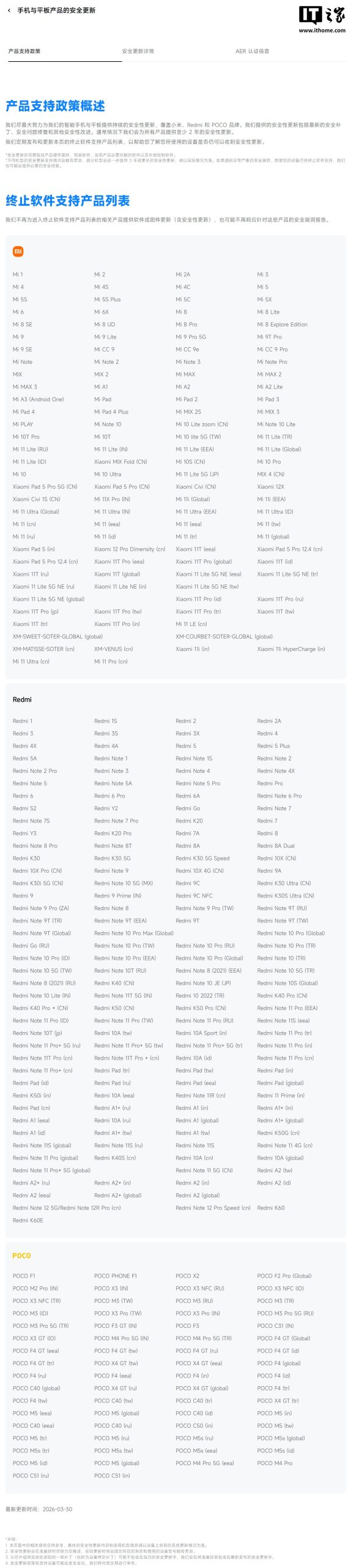 IT之家 3 月 30 日消息,小米官网安全中心现更新智能硬件产品终止软件支持产品列表。
