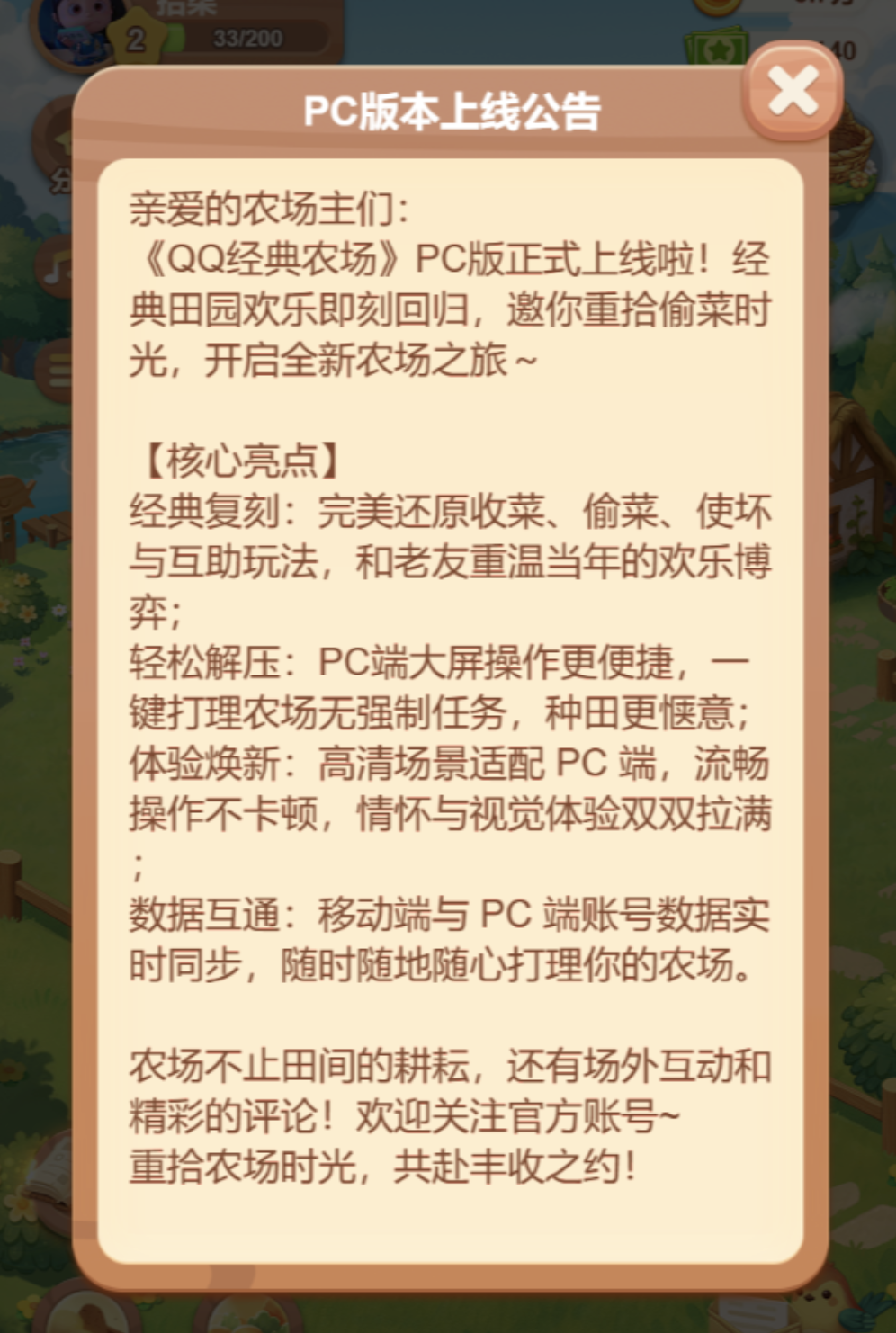 IT之家 3 月 30 日消息,腾讯宣布旗下《QQ 经典农场》PC 版正式上线,支持在 PC / Mac 平台使用微信 / QQ App 以小程序模式游玩,其中微信端可在小程序面板搜索框中搜索“QQ 经典农场”、QQ 端可在侧栏直接找到农场入口。
