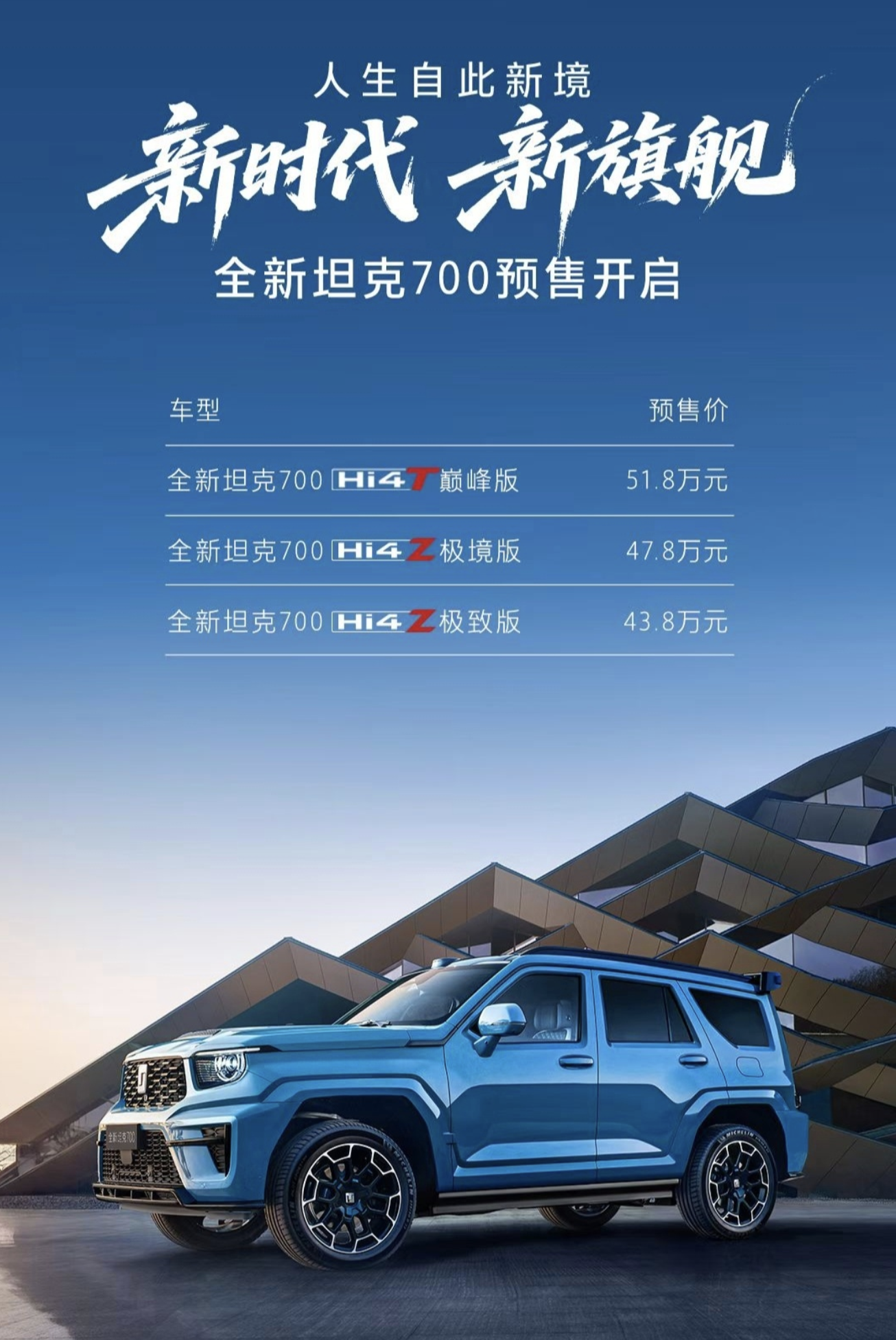 IT之家 3 月 30 日消息,长城汽车旗下 2026 款坦克 700 Hi4-T/Hi4-Z 今天的发布会中正式开启预售,系列车型共推出 3 款版本,预售价为 43。