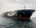 周一晚上,伊朗袭击了一艘停泊在迪拜港口的满载原油油轮,损坏了船体,数百名困在停泊在附近的油轮上的海员距离很近,可以看到这艘油轮被烧毁。
