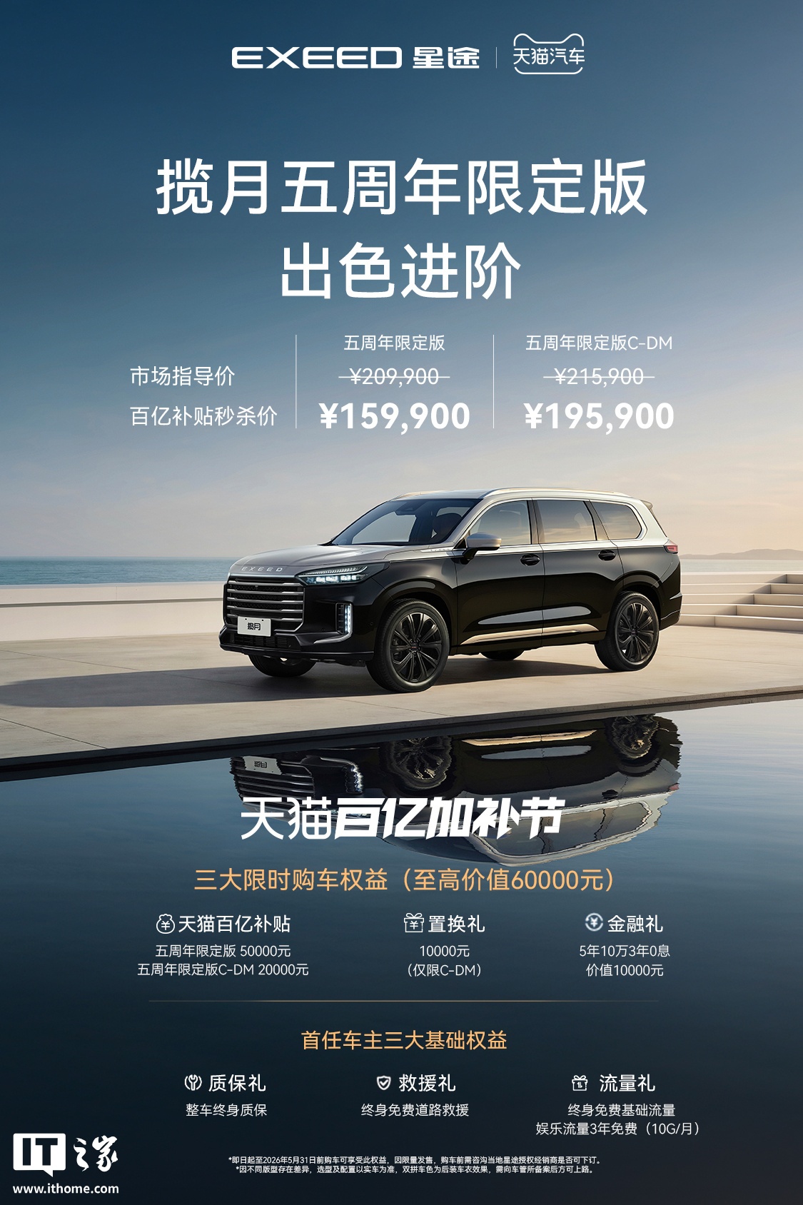 IT之家 4 月 1 日消息,奇瑞星途揽月五周年限定版已上市,共推出 2 款车型,官方指导价分别为 20。