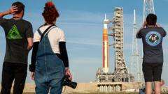他是预计将挤满佛罗里达州太空海岸的堤道、海滩和汽车旅馆阳台的 40 万人之一,参加当地时间周三 18:24(英国夏令时 23:24)阿耳忒弥斯二号的发射尝试。