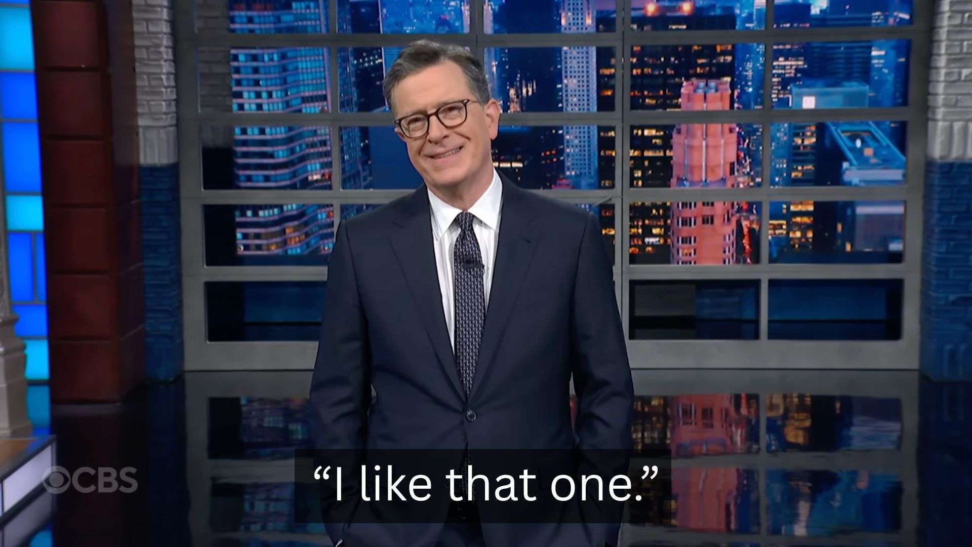 ” (“我喜欢那个,”科尔伯特说)和一个巨大的总统排便充气玩具。